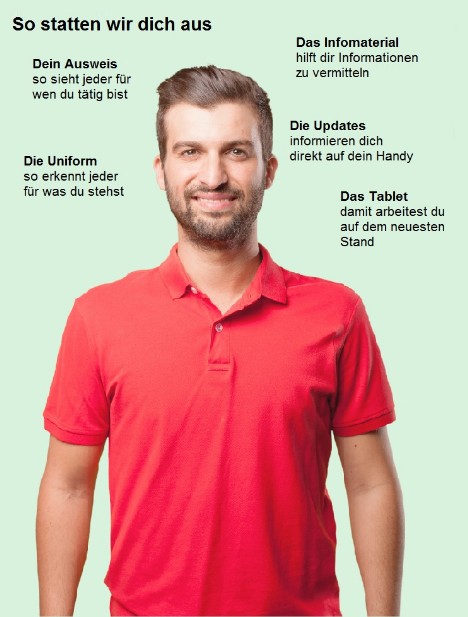 Wir statten dich mit voller Montur und Equipment für die Arbeit als Fundraiser aus.